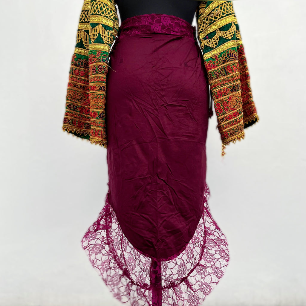 • Descripción: Falda de licra 100% algodón, estilo bohemio. Se puede hacer corta o larga en la parte del frente, atando los listones.