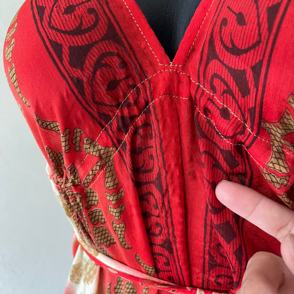 * Nota: Esta prenda puede estar hecha con partes de tela “vintage” y reciclada de la vestimenta tradicional llamada “Saree”, que utilizan las bellas mujeres de India. Los “sarees” son seleccionados y restaurados con mucho amor, dedicación y pasión.