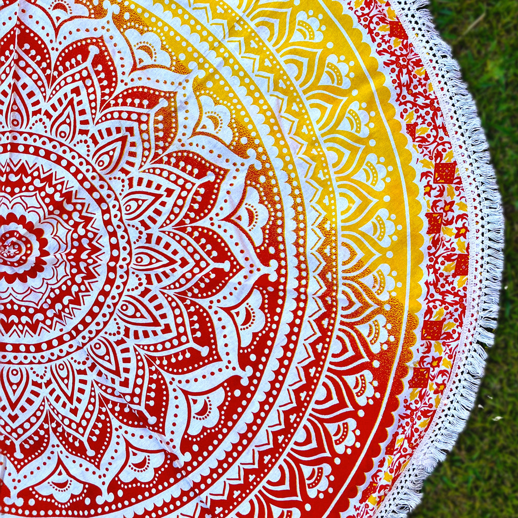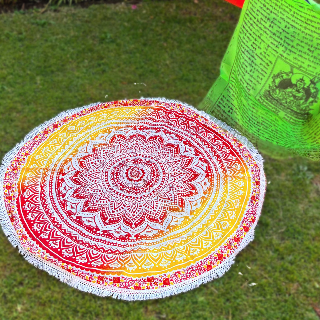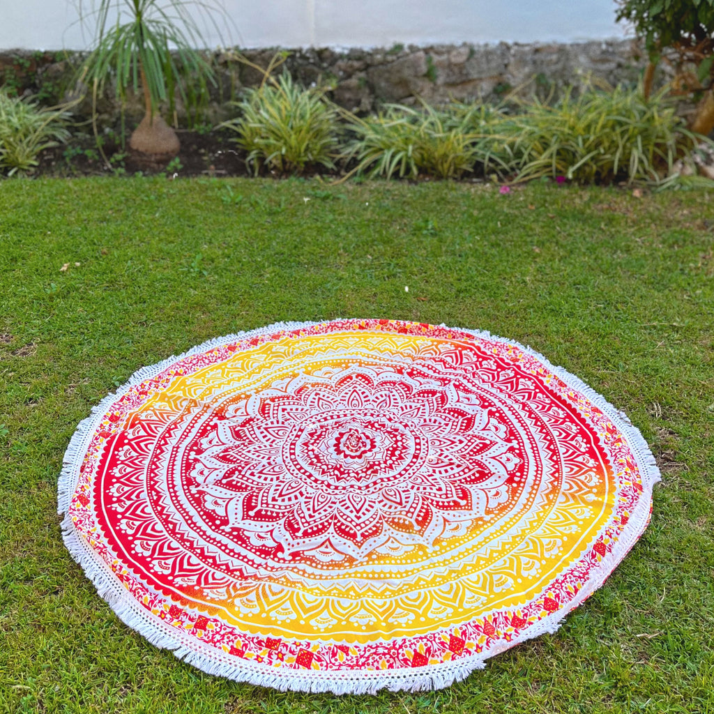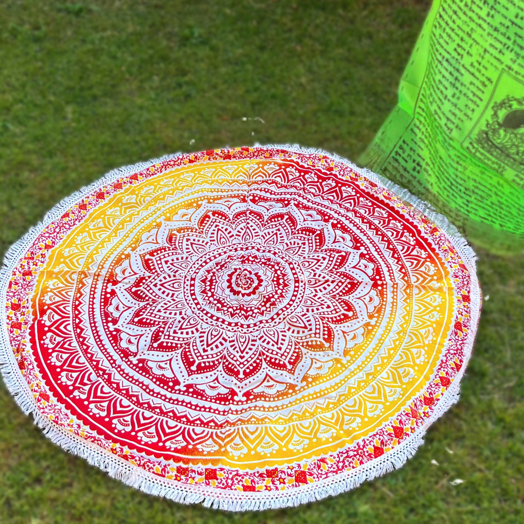 Descripción: Manta de mandala de India. Múltiples usos como cobija, mantel, tapete, etc.
