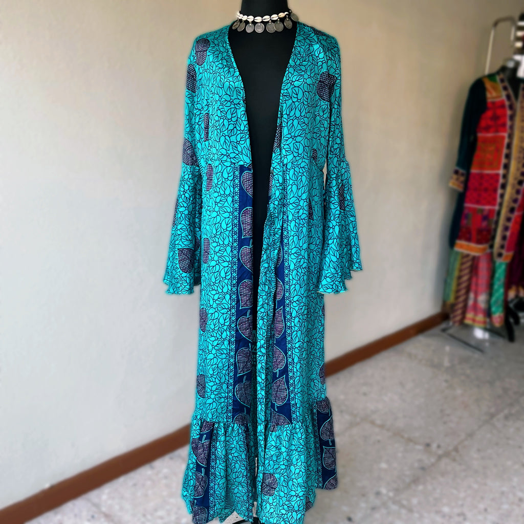 2 en 1 Kimono y Vestido de Seda India - Largo