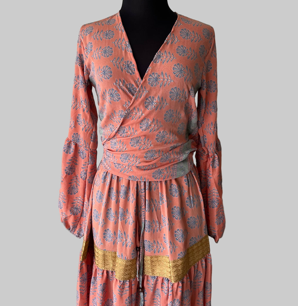 * Nota: Esta prenda puede estar hecha con partes de tela “vintage” y reciclada de la vestimenta tradicional llamada “Saree”, que utilizan las bellas mujeres de India. Los “sarees” son seleccionados y restaurados con mucho amor, dedicación y pasión.