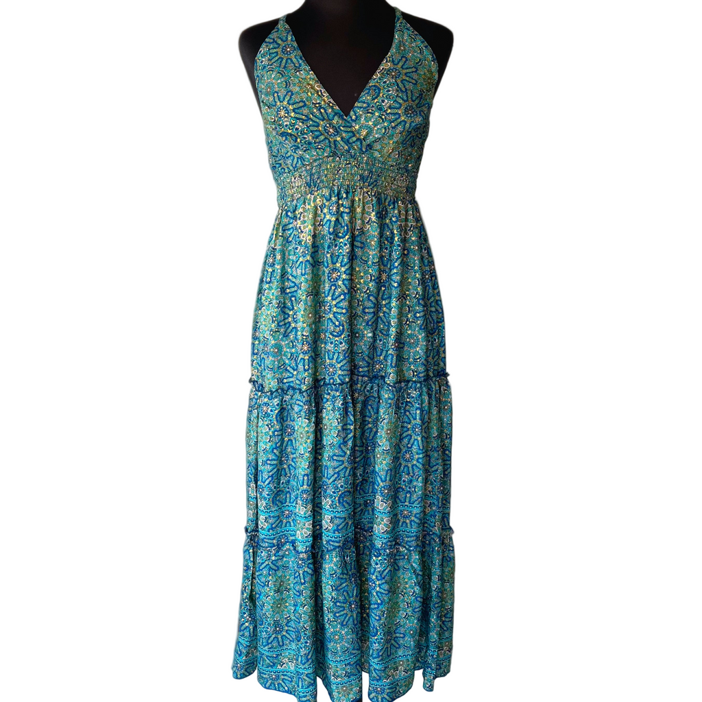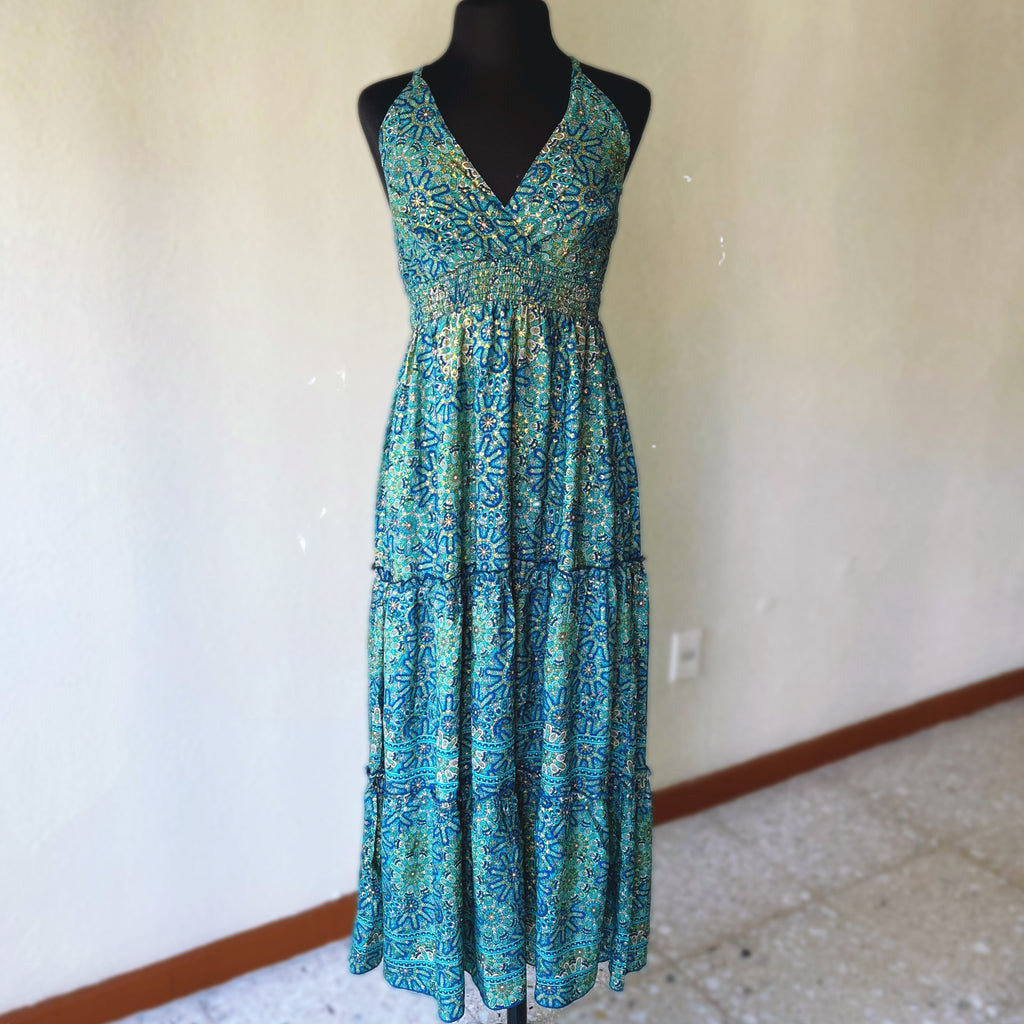 • Descripción: Vestido Bohemio hecho con hermosos dibujos y estampados dorados.