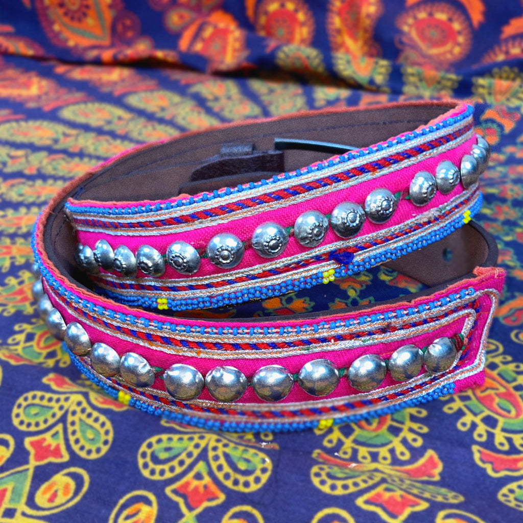 Descripción: Cinturón gitano y artesanal, hecho con amor por la Tribu Gitana Kuchi en Pakistán. Estilo Bohemio y Nómada. De moda lenta y atemporal.
