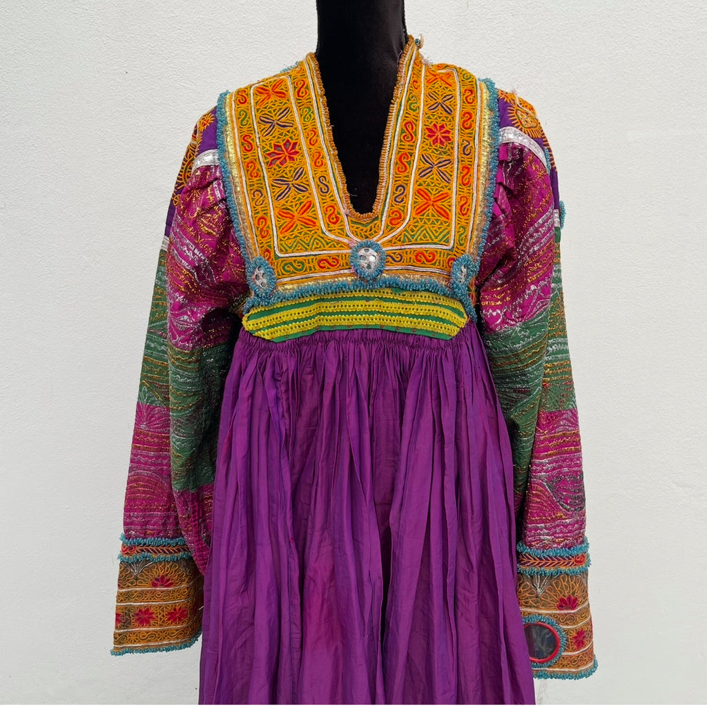 • Descripción: Vestido antiguo de Afganistán, hecho en su mayoría de forma artesanal por la tribu gitana Kuchi.